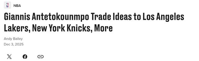 准备开抢!美媒晒字母哥5笔交易方案:湖人可10换2打造4巨头争冠