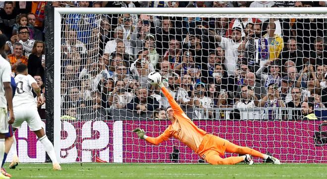 姆巴佩罚丢点球是一个转折点,错失点球后,皇马的进攻节奏明显放缓,迟迟无法再次破门。直到比赛第94和95分钟,罗德里戈才两次射正球门,但都被状态出色的什琴斯尼一一化解。全场比赛,皇马狂轰23脚射门,创下自2003/04赛季以来,皇马新帅参加首场国家德比的射门纪录,但最终未能“乘胜追击”,将对手彻底击垮。